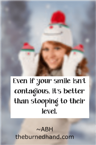 The next store, I just hummed a song and spoke to people again. The lady stocking the supplies, she didn’t not smile, but didn’t exactly go out of her way either. Hmmm. Went to check out and noticed a lady who was having problems in front of a lady who seemed to be in a huge hurry. She had pinched lips and looked perturbed. I told this older gentleman in messy, stained clothes to go ahead of me. He only had a newspaper and I smiled at him and said please go ahead of me. I have a cart full. He said thank you, and I believe the pinched lipped woman looked less frazzled after I did that. Then a man came up with his arms full of things and I laughed and said “Do you need a cart?” He smiled at me and held up some crazy snowmen signs and said “How can you not get these??” and he reminded me of Wayne Brady, so he made my day. How could I not get two snowmen signs? I don’t know Wayne, but I think you are hilarious.